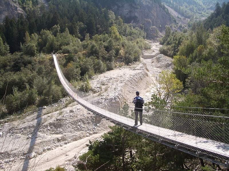Nur etwa 20 Gehminuten oberhalb des Chalets gibt es eine Hängebrücke, die über den Illbach in den Pfynwald führt.